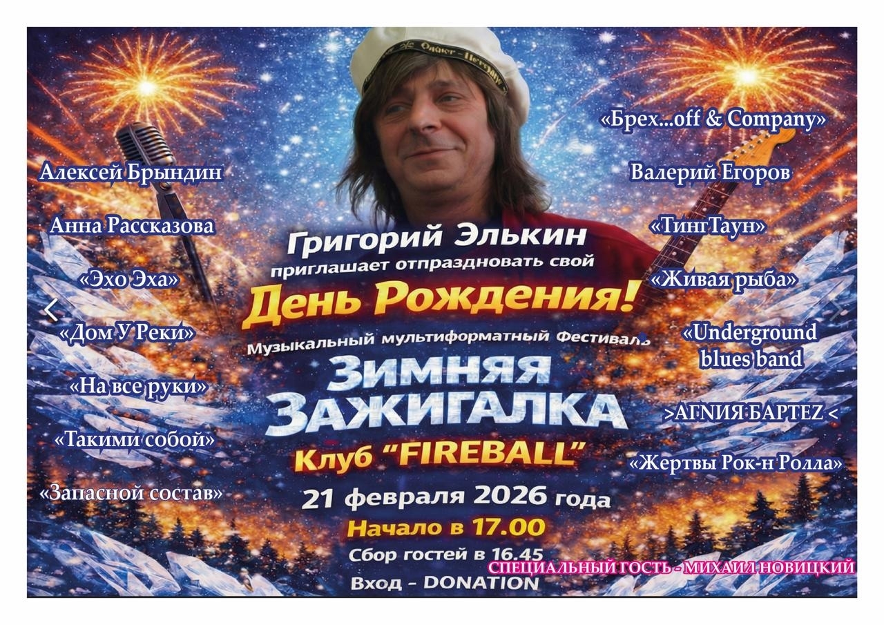 музыкальный фестиваль "VITALfest" Друзья! Приглашаем всех Вас на фестиваль "VITALfest" в клуб «Fireball»!!! Отличная музыка, драйв, хорошее настроение и незабываемые эмоции ждут вас в этот вечер. На сцене выступят Специальные гости: Владимир Бредихин (лидер группы АГNИЯ БАРТЕZ) - музыкант, композитор, участник и организатор многих фестивалей. Его песни знают не только в Санкт-Петербурге, но и в […] |
